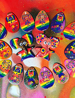The drawings he made of me over all the years finally led to the idea to start a Street Art project with me as principal character, symbolized by a 3D-Sticker. The first stickers were presented to public in May 2016. Since my father H. suffers from ALS, I want to travel for him and all others who have this awful disease..